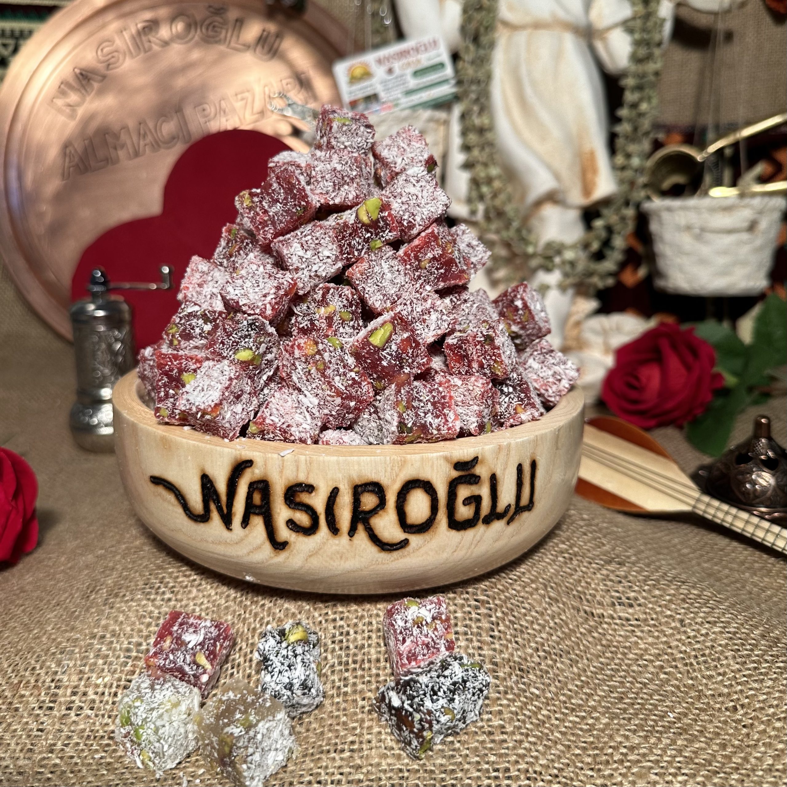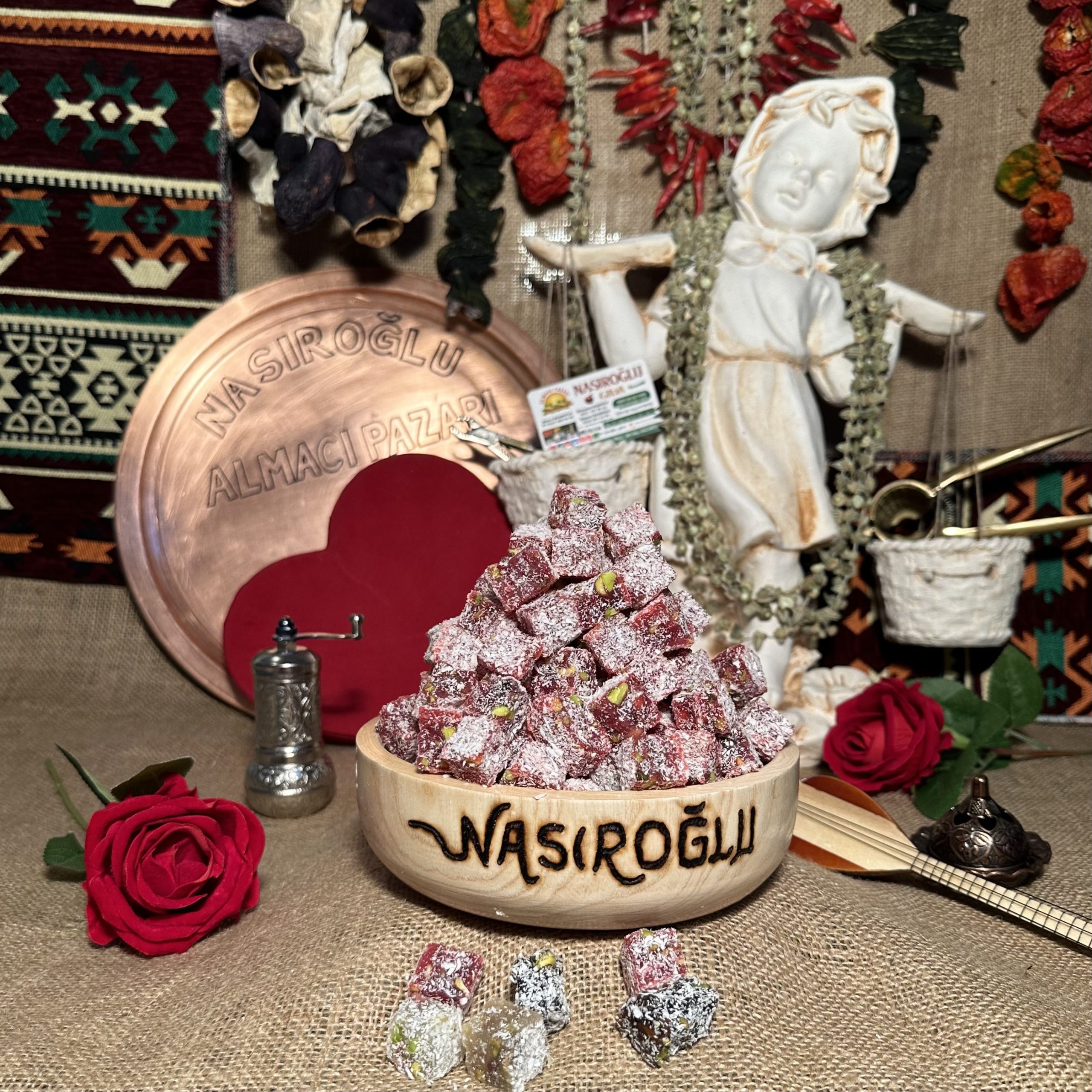 NASIROĞLU GIDA: ÇİFTE KAVRULMUŞ NARLI FISTIKLI LOKUM – 500 G